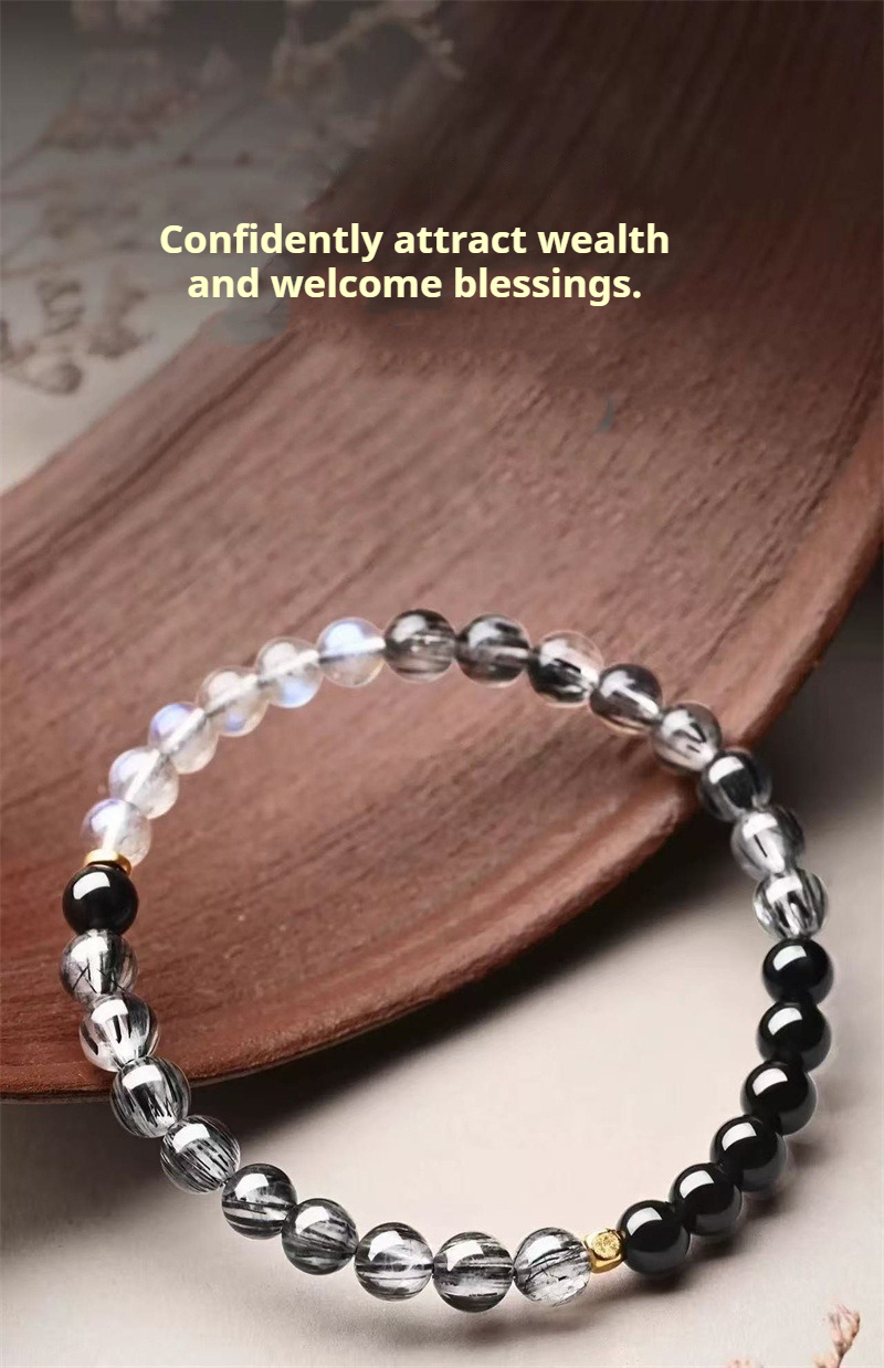 The Midnight Eclipse - Natural Black Rutilated Quartz & Moonstone Bracelet for Strategic Protection & Clarity