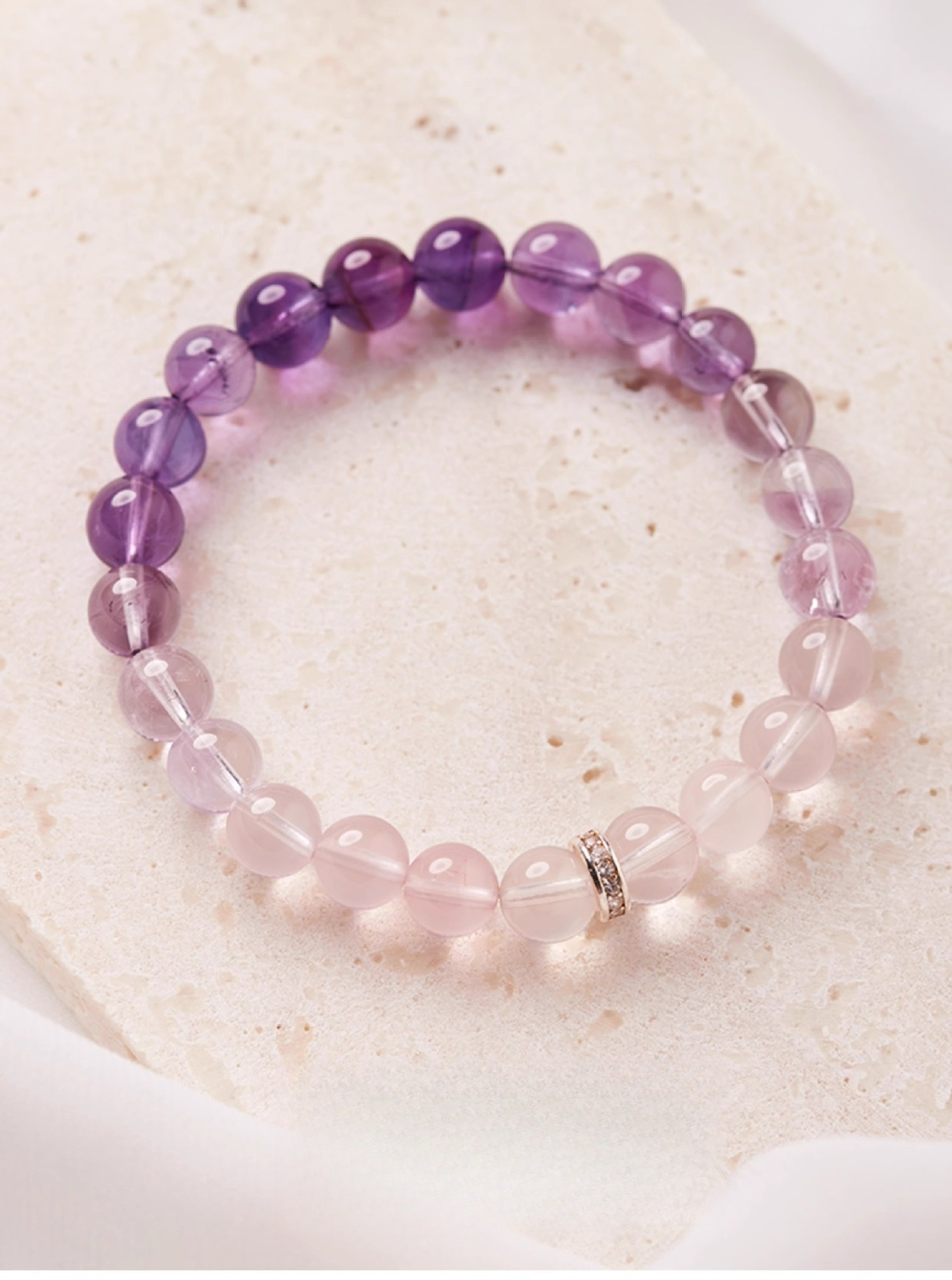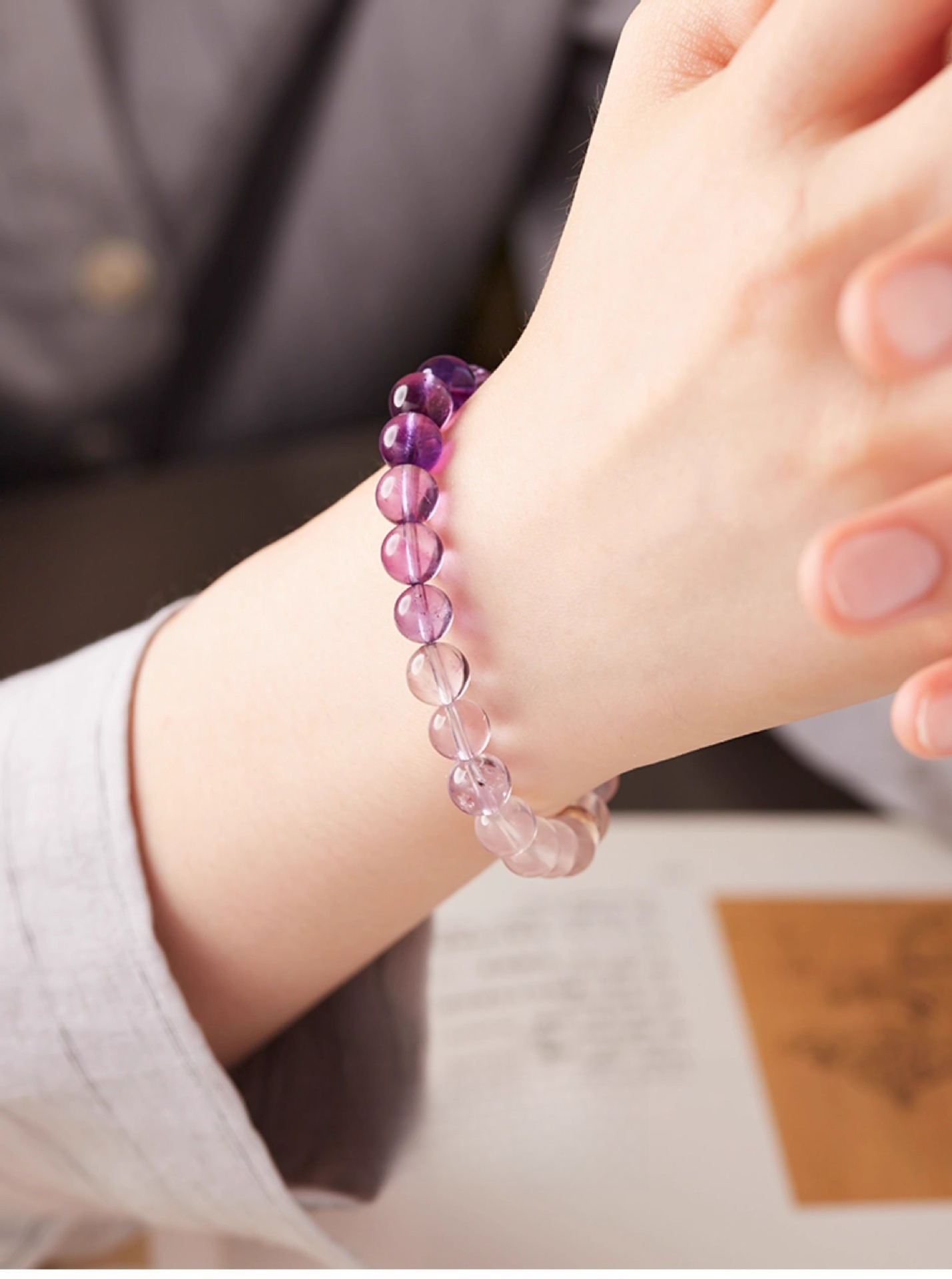Ombre Amethyst Gradient: Features high-clarity beads that transition from clear quartz-like transparency to a deep, royal purple. This represents the Crown Chakra alignment, which is essential for receiving the "Success Frequency".