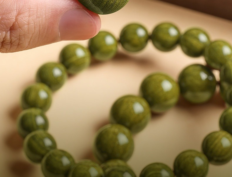 The Color of Growth: Its olive-green hue represents vitality and resilience, evolving into a deeper, richer patina the more you wear it—just like your own journey of growth.